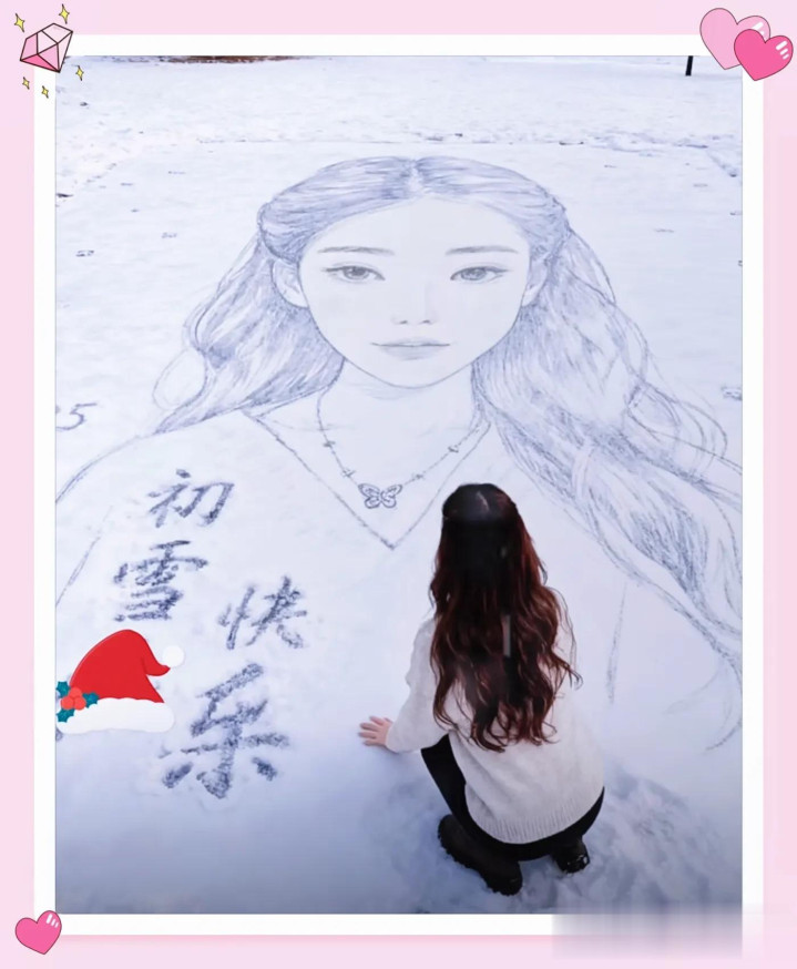今天北京下雪了,马筱梅还在户外的雪地上,画了画,没想到马筱梅真的是做什么,像什么,画画都那么好,雪地上的头像美的像画里的一样!